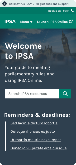 I led a Workshop with stakeholders where we decided that the public facing site should feel like a cousin of the MPs website, with similar design patterns but some extra visual appeal and variety on high level pages to reflect it's public facing role.